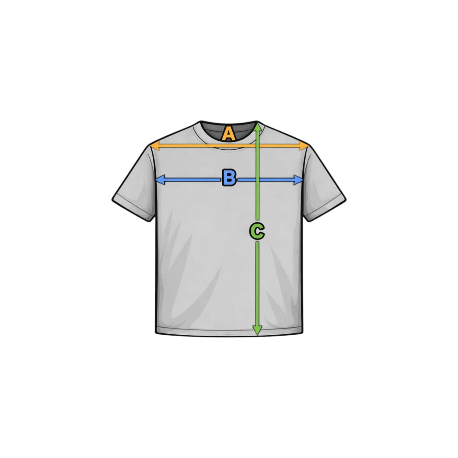 Das Shirt wird glatt und flach liegend gemessen, ohne es zu dehnen.