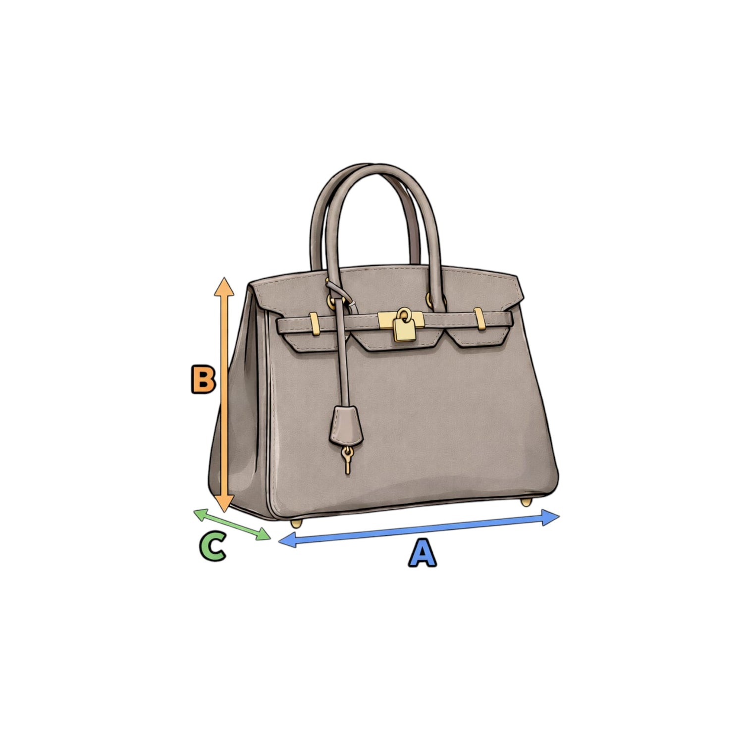 - (B) Höhe: Von der Unterkante bis zur Oberkante der Tasche