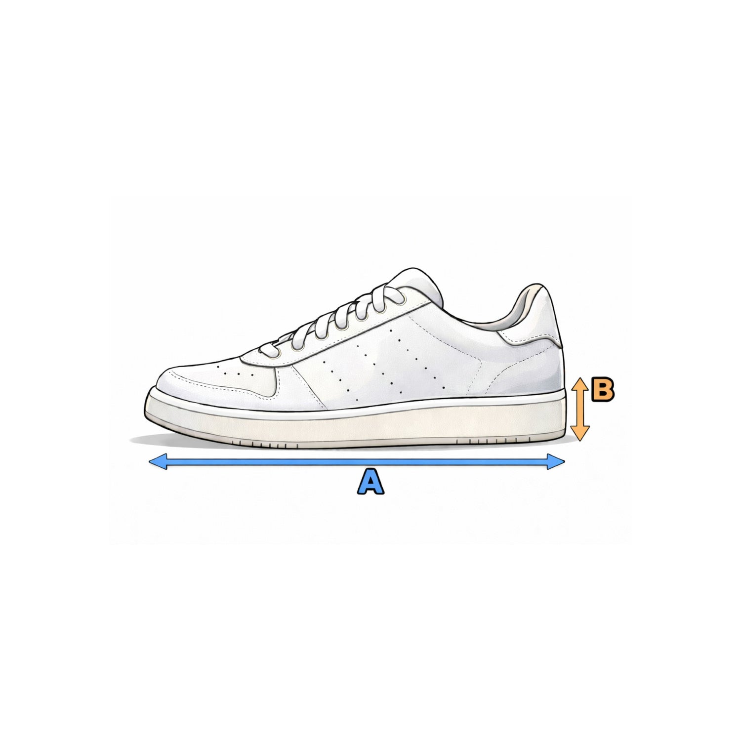 - (A) Innenlänge der Sohle: Von der Spitze bis zur Ferse der Innensohle